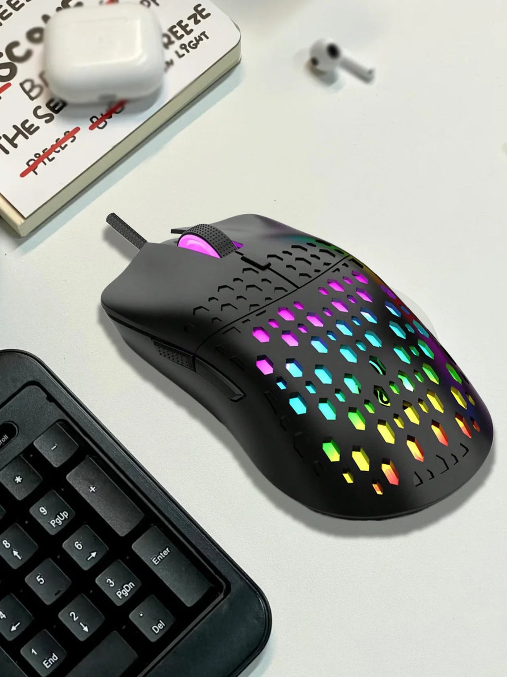 Mouse Gamer Sem Fio – Iluminação Colorida, DPI Ajustável, Design Honeycomb Moderno e Leve