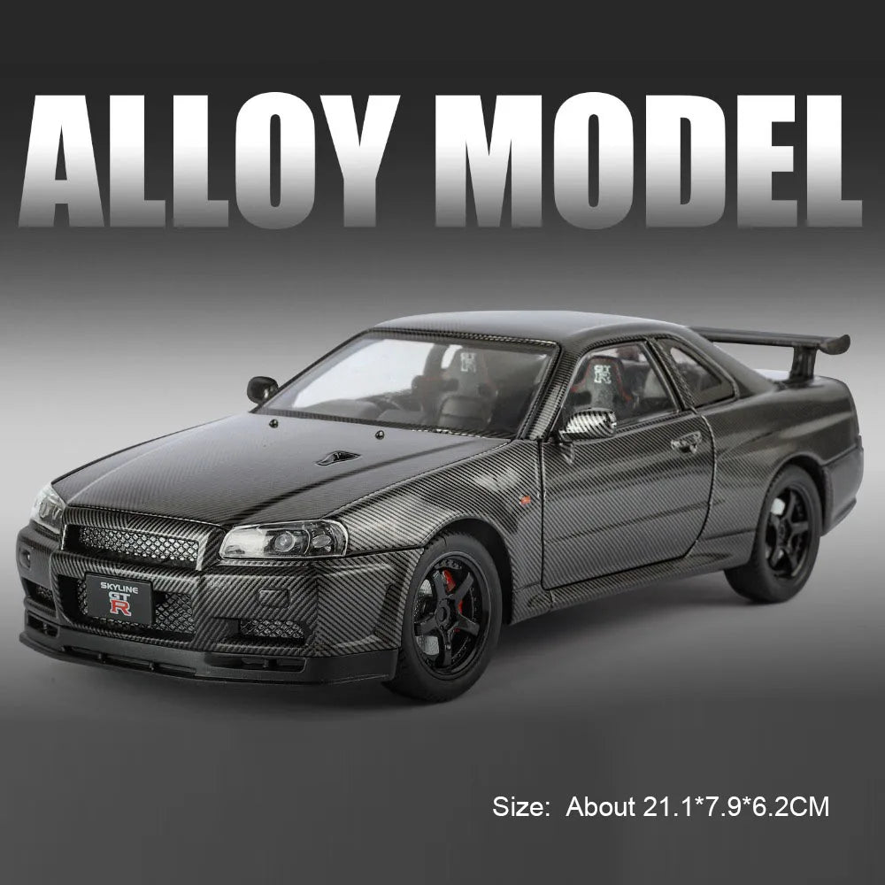 Carro Modelo 1:24 Nissan GTR R34 – Diecast com Som, Luz e Portas Abríveis