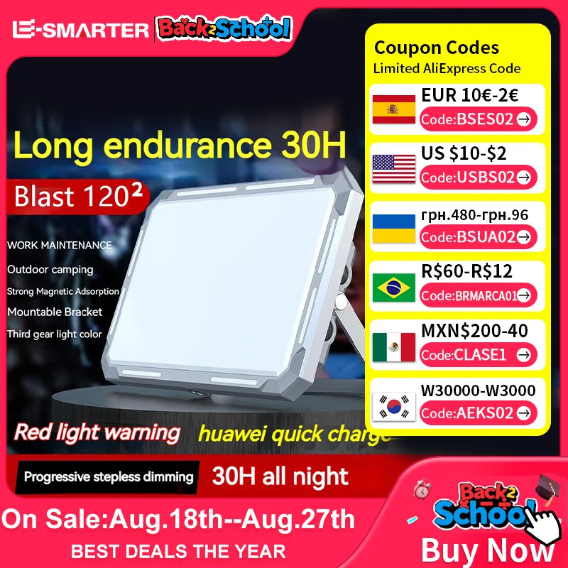 Lanterna LED Recarregável 1000LM USB-C Magnética Power Bank Camping Emergência